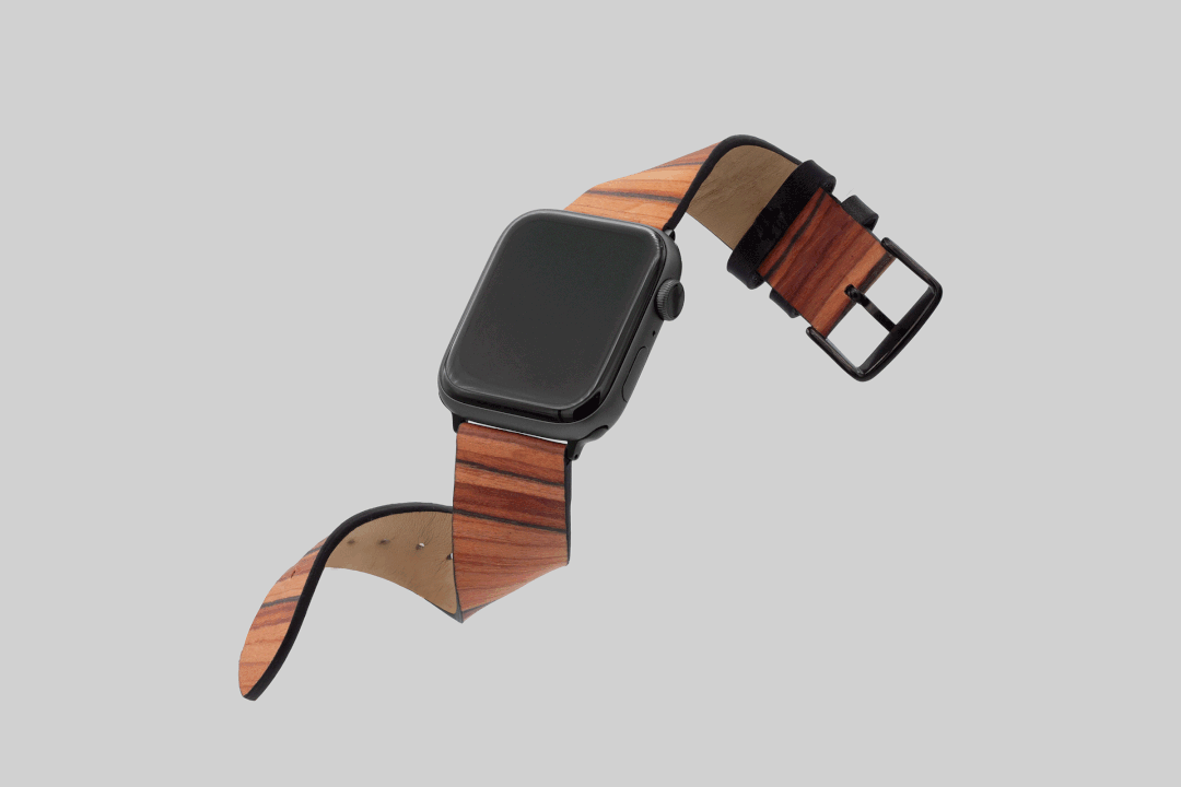 世界初の柔らかく曲げに強い耐水性のある木製バンド技術から作られた製品です。